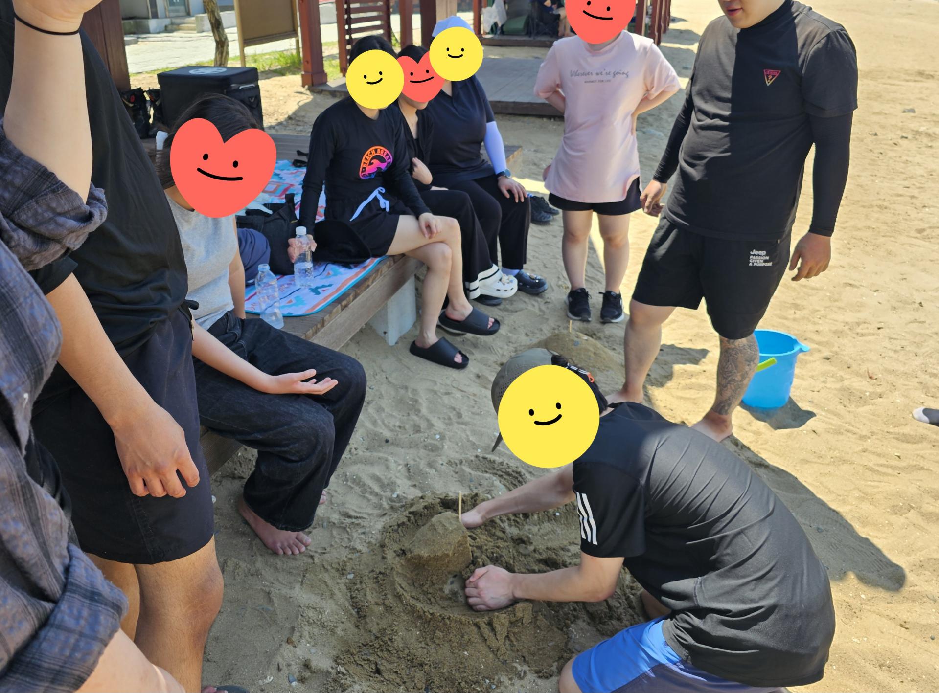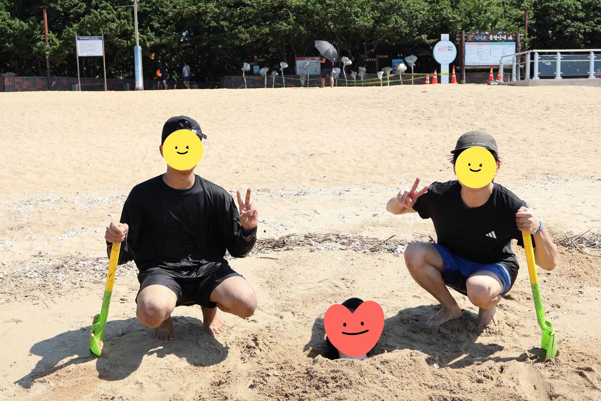 모래사장에서는 서로 모래찜질을 해주기도 하고 예쁜 인증샷도 찍어보고!
