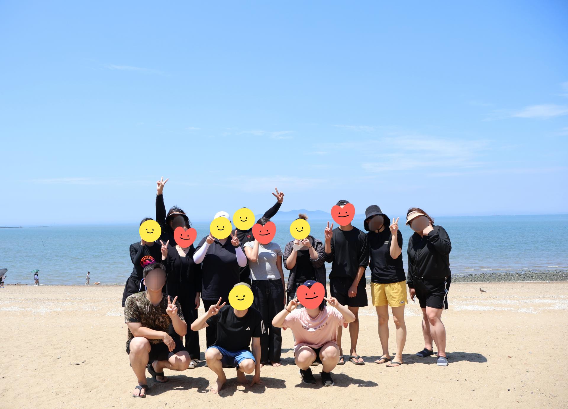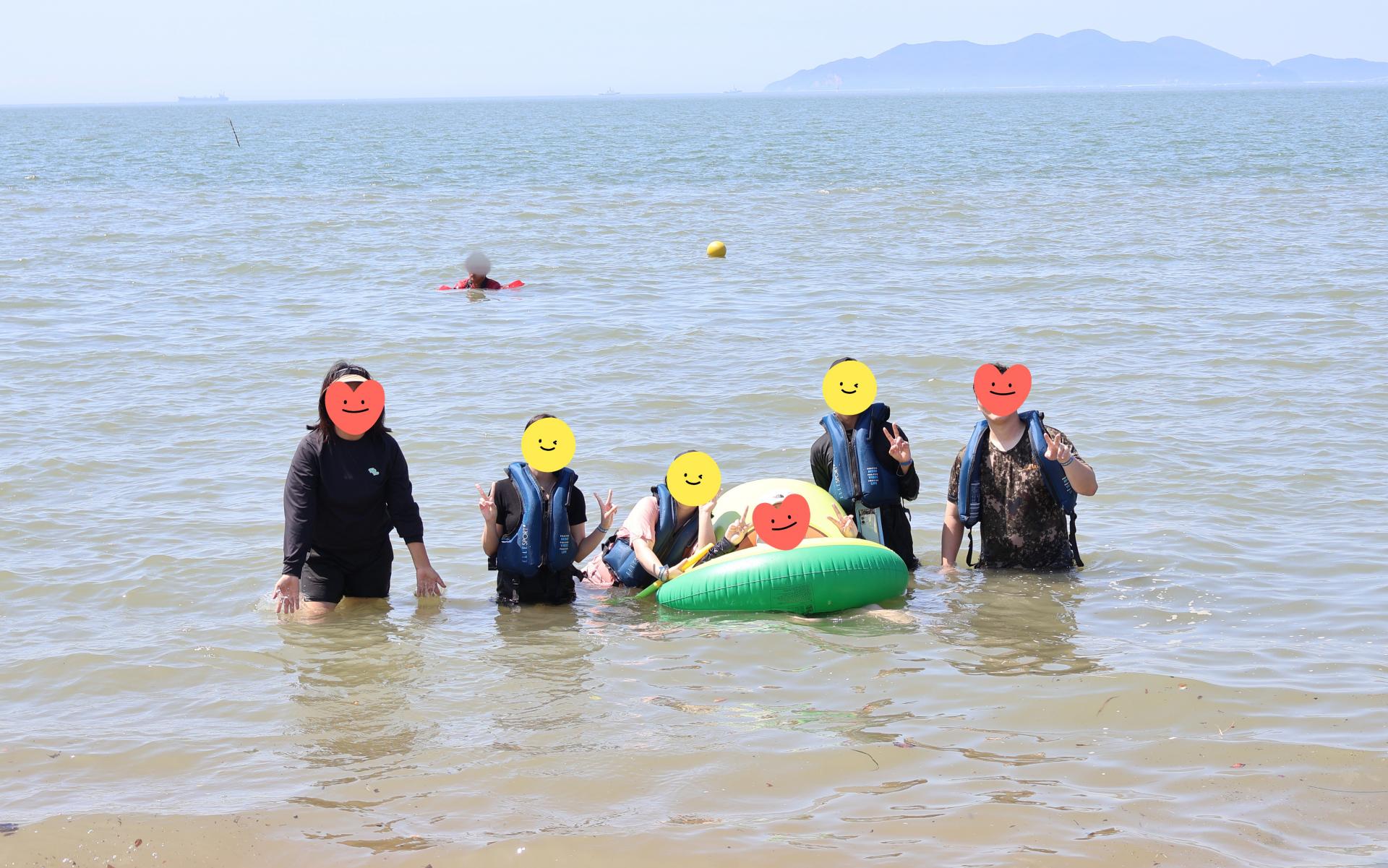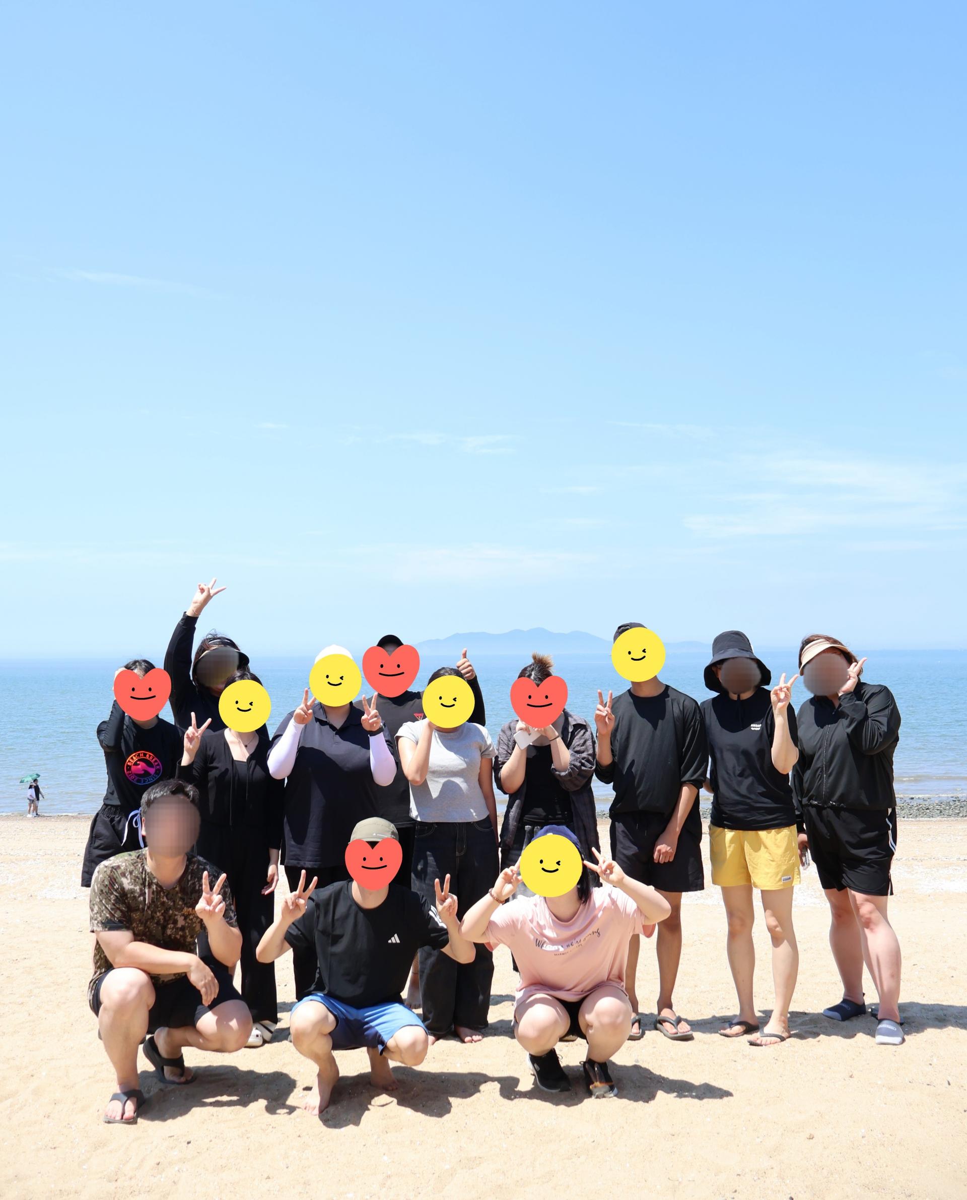 물놀이 하기 딱 좋은 날씨! 푸른 바다를 배경으로 다함께 사진도 남겨보았습니다.