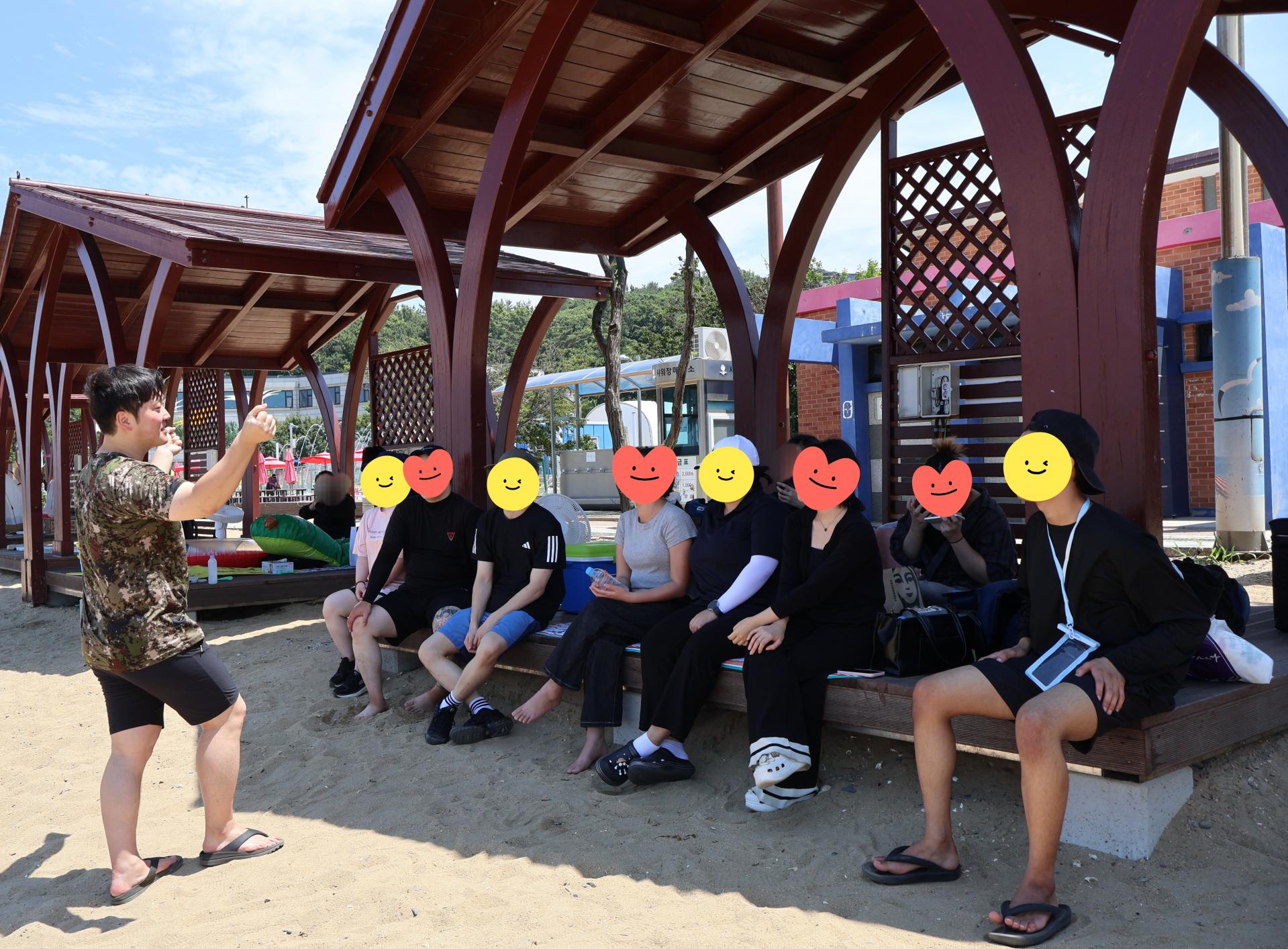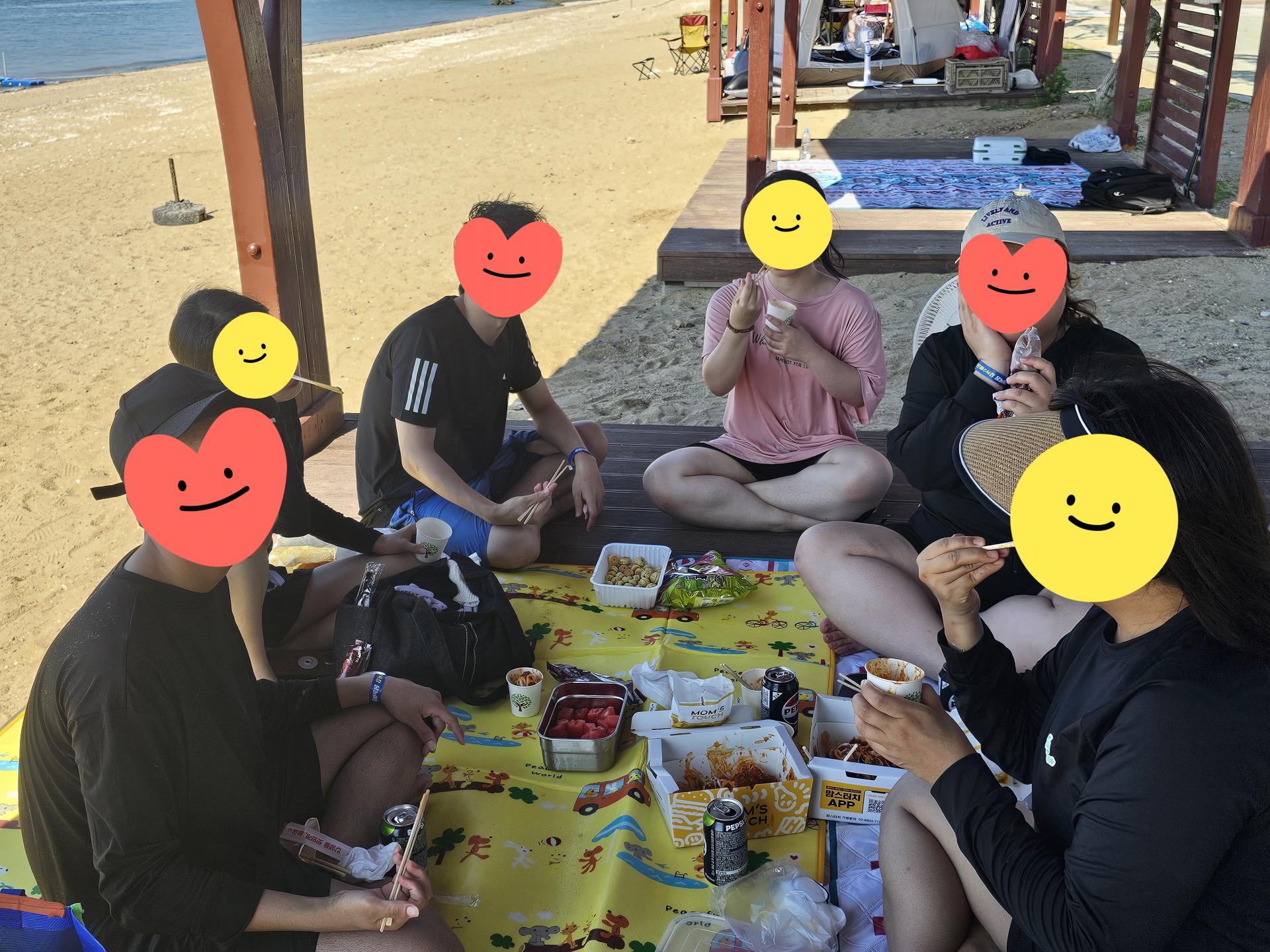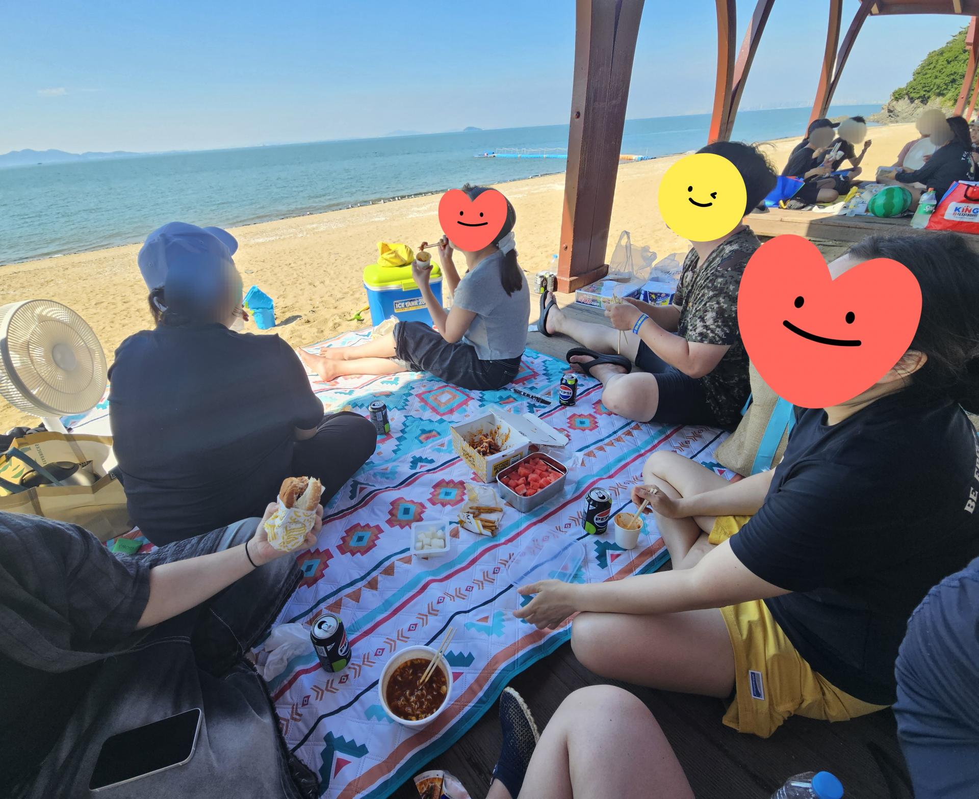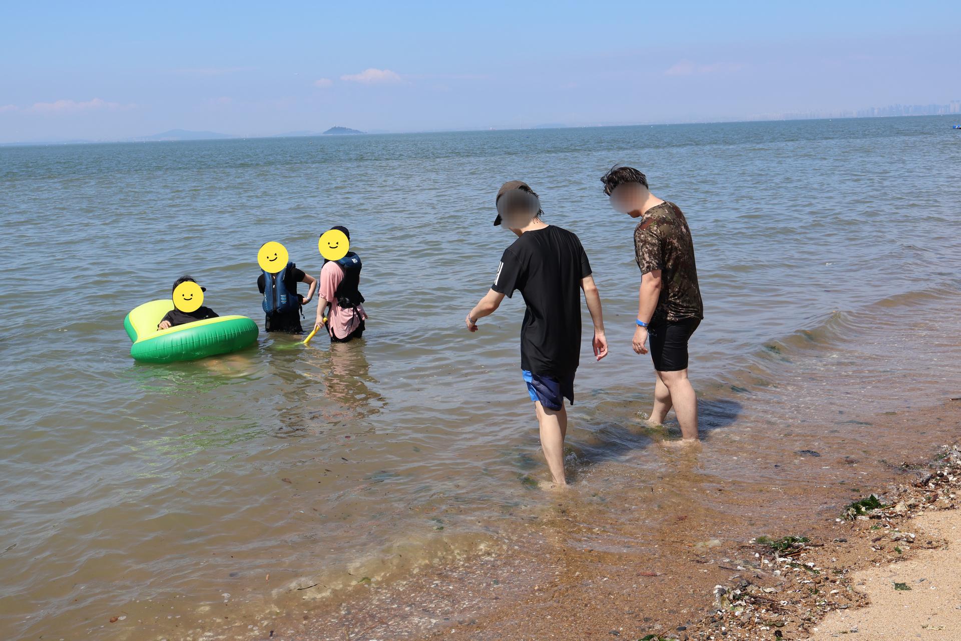 물놀이 하기 딱 좋은 날씨! 푸른 바다를 배경으로 다함께 사진도 남겨보았습니다.