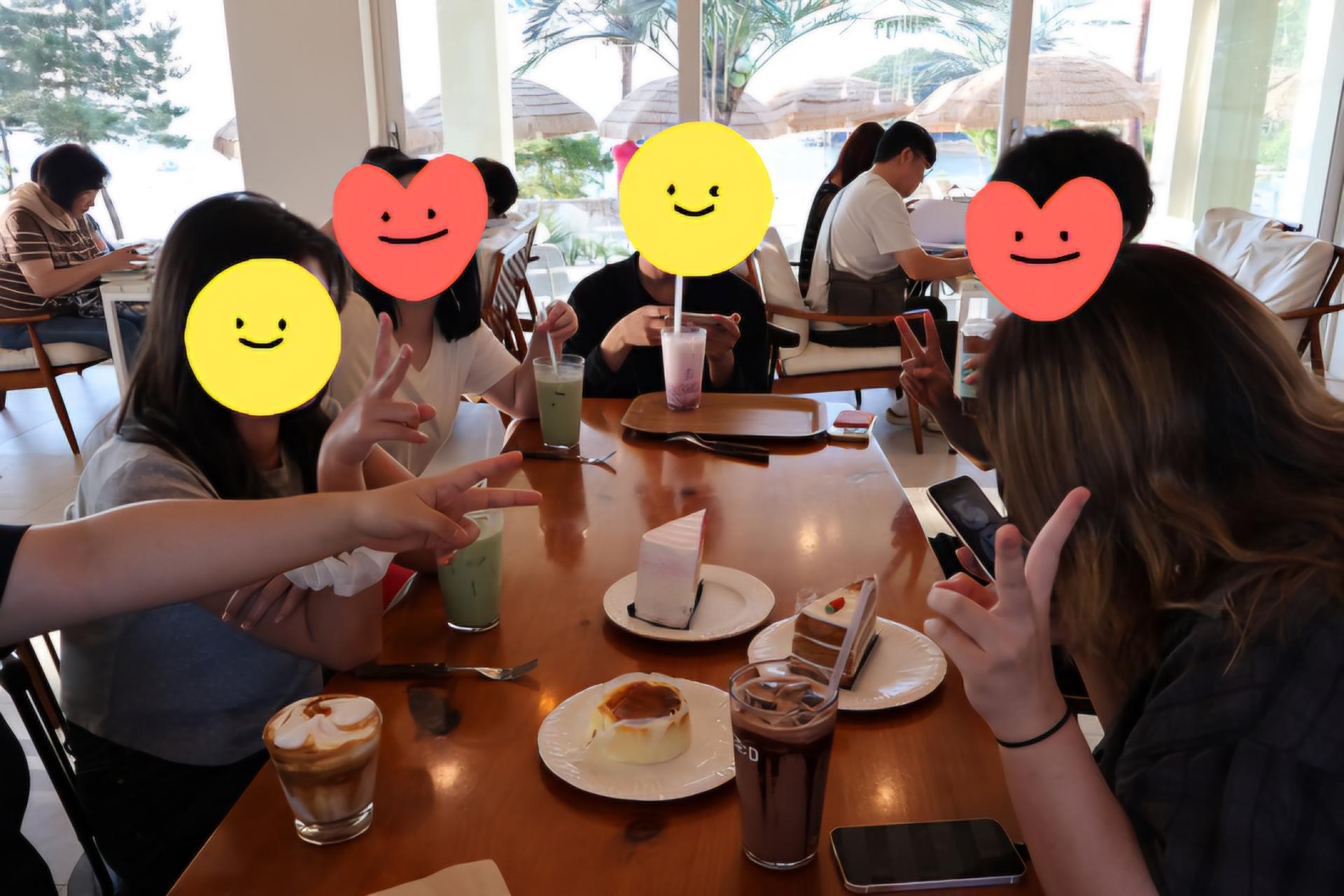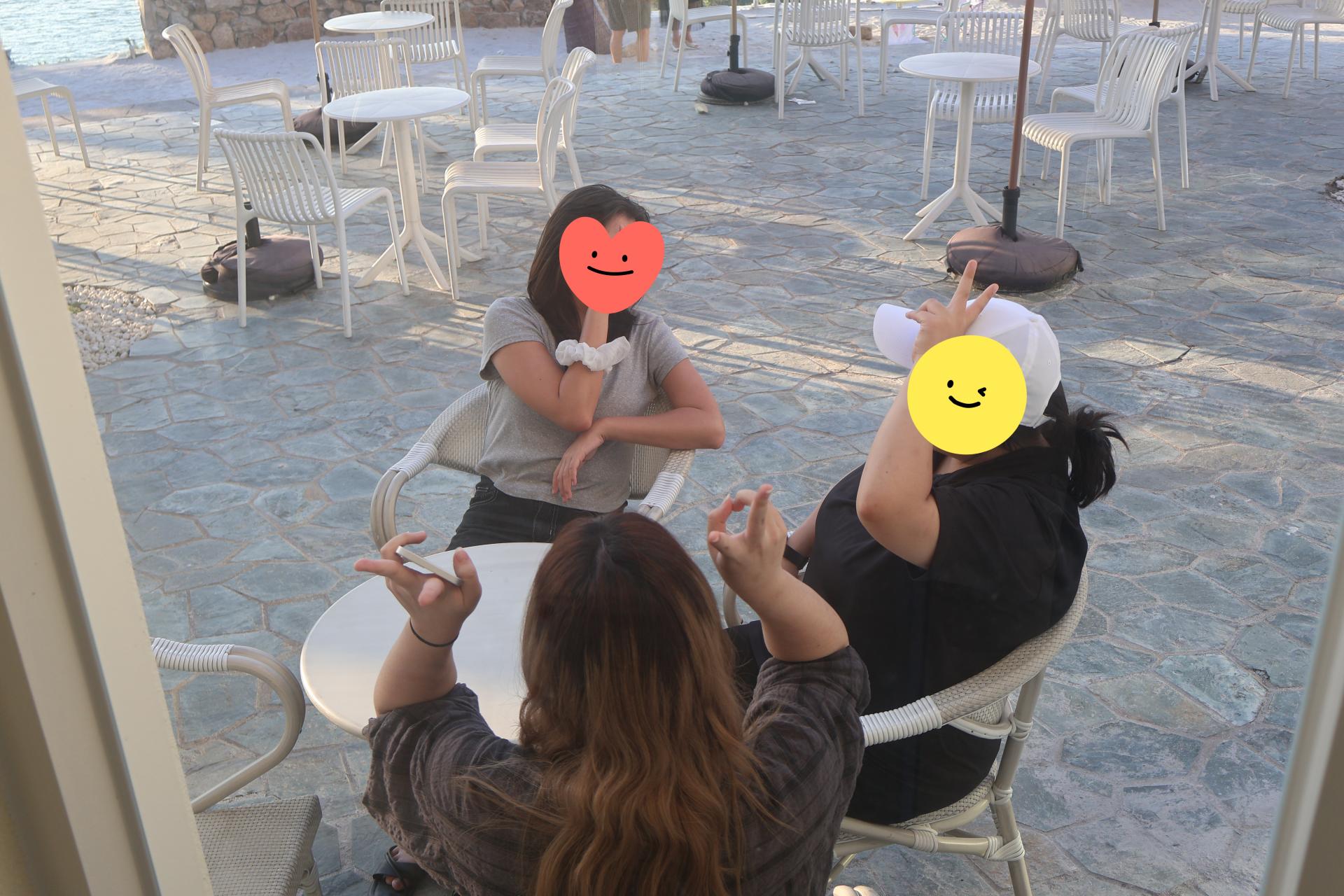그리고 마지막 물놀이 후, 각자 샤워와 뒷정리를 마치고는 바다가 보이는 멋진 풍경을 감상할 수 있는 카페로 자리를 옮겼습니다.