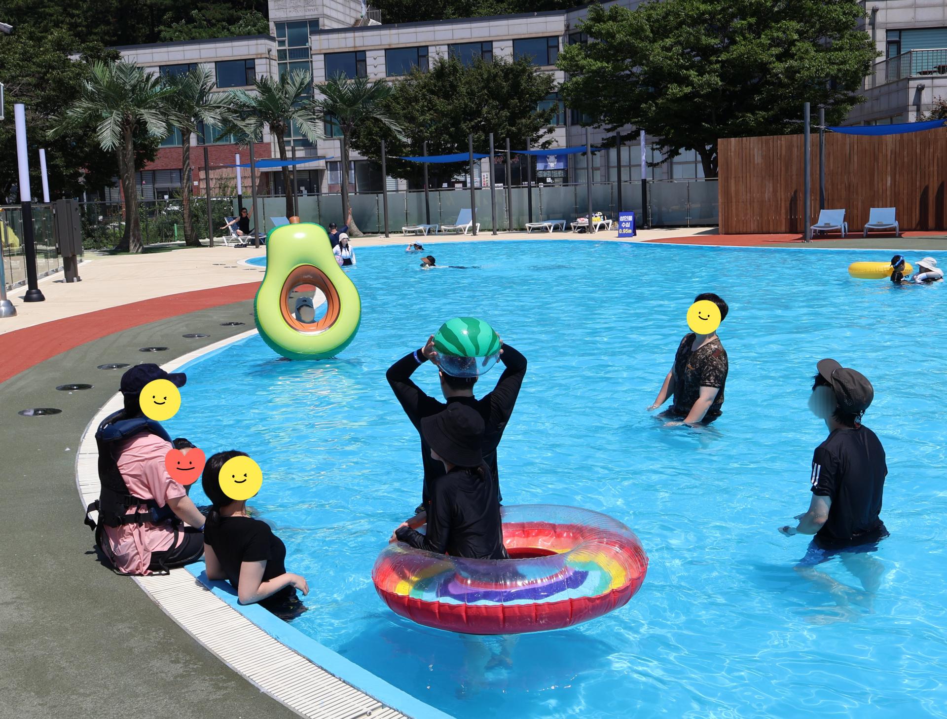 초반에는 아직 만조 시간이 되지 않아 야외 수영장을 먼저 이용했는데요, 시원한 물에서 자유롭게 수영도 하고